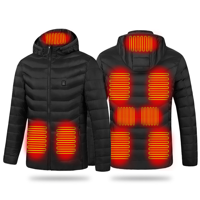 The jacket has 9 heating zones- warmth to the neck, full back with 6 heating zones, and 2 heating zones in the front pockets.