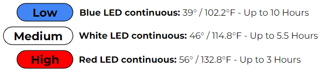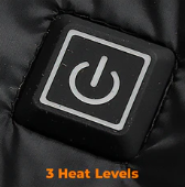 One press will cycle through the Heated Jacket’s temperature settings.